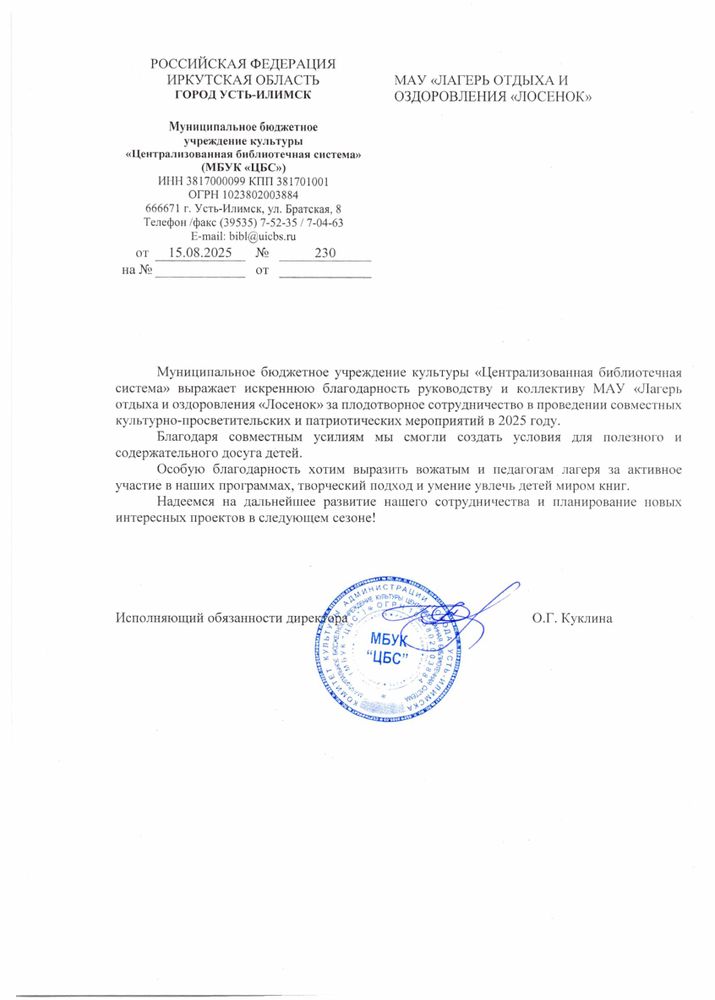На протяжении нескольких лет лагерь "Лосёнок" сотрудничает со многими организациями города и района, которые помогают сделать летний отдых ярче и интереснее.